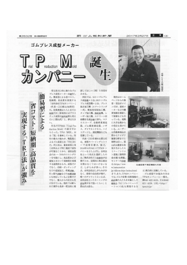 さる2月3日、弊社の代表がゴム報知新聞の取材を受けました。
