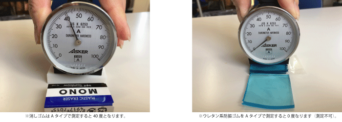 ゴムに携わっている方は当たり前のことですが、携わっていない方たちにはゴムに硬さの種類があることを知らない場合もありますので丁寧に説明させて頂きます。