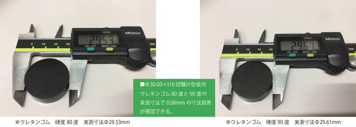 したがって、同じ型で硬度を変えて成型する場合は成型自体は可能ですが、収縮差による寸法の誤差が生じてしまいますのでご注意ください。