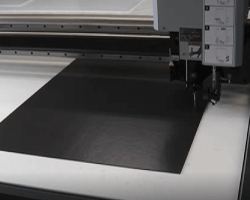 シリコンゴムシートをプログラムで制御されたプロッターと呼ばれる刃物(高性能なカッターの刃のようなもの)がついた加工機で、精密に加工する工法で複雑な形状も可能であり、抜き型が不要なため1個でもコストを抑えて製作する事が可能です。もともとは制御された大型印刷機の事をプロッターと呼ぶそうで、そこからカットする機械もプロッターと呼ばれるようになったそうです。