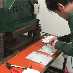 打ち抜きに使用する機械としてプレス機を用いますが、簡易的なハンドプレス機やエアープレス機、油圧のプレス機などを用います。