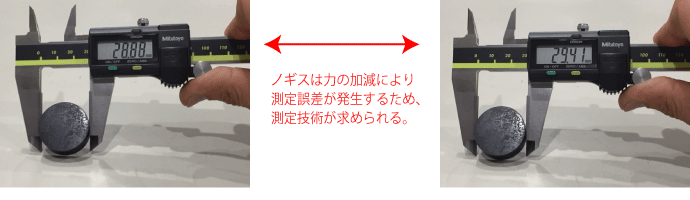 ゴム製品は弾性がありますので寸法を測定するには技術を要します。単純なブロック形状をノギスで測定しても、慣れていない作業者はなかなか正確な寸法を測定することができません。検査作業者の技術向上が必要になるところですがこのような技術が無くても正確に測定できる器具は画像寸法測定機となります。