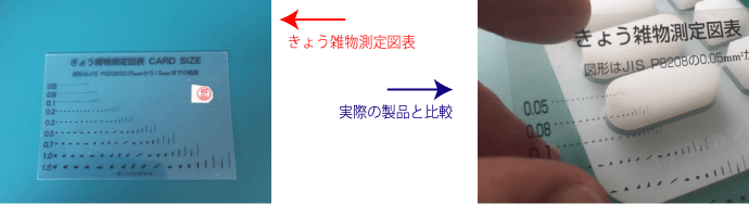 この許容範囲を決めるのに役立つのが「きょう雑物測定図表」となります。この測定図表に基づいて検査していきます。