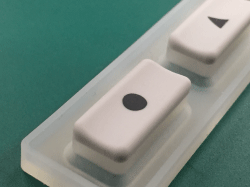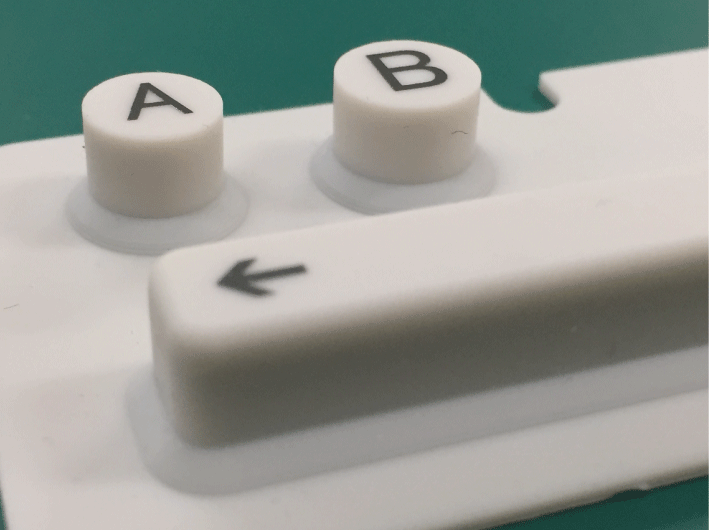 特に身近なものとして、シリコン製のテレビのリモコンや電卓のボタン等に文字の印刷が施されておりますが、それらがシリコン印刷となります。