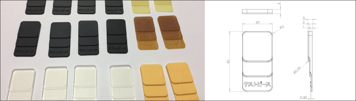 ゴムは材料毎に収縮率が違うため必ずしも図面寸法通りではありませんが、サンプルピースと一緒に保管しておくことで厚み等の参考にしてください。